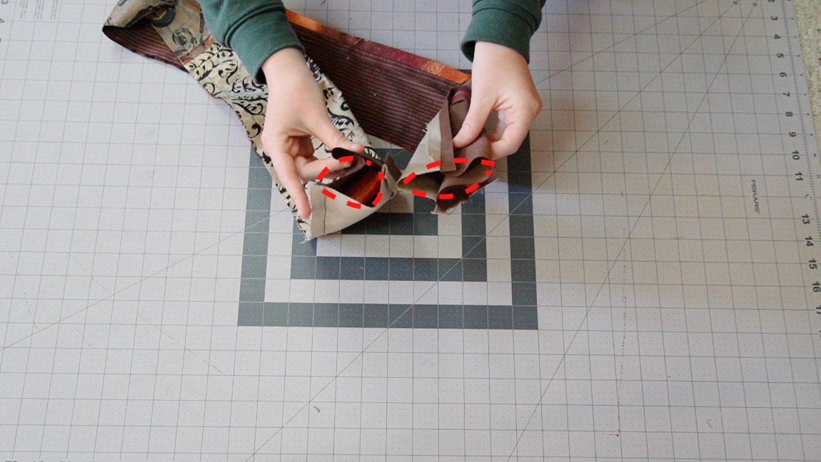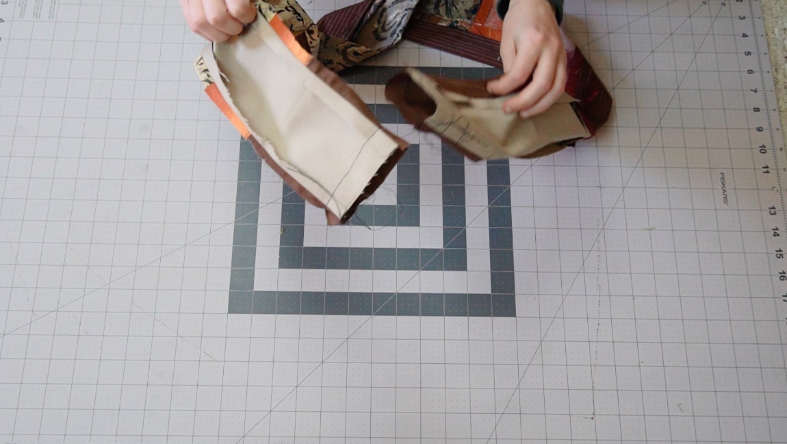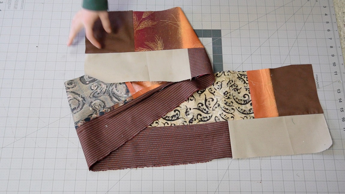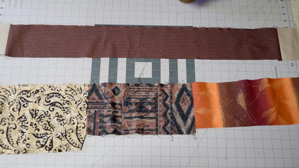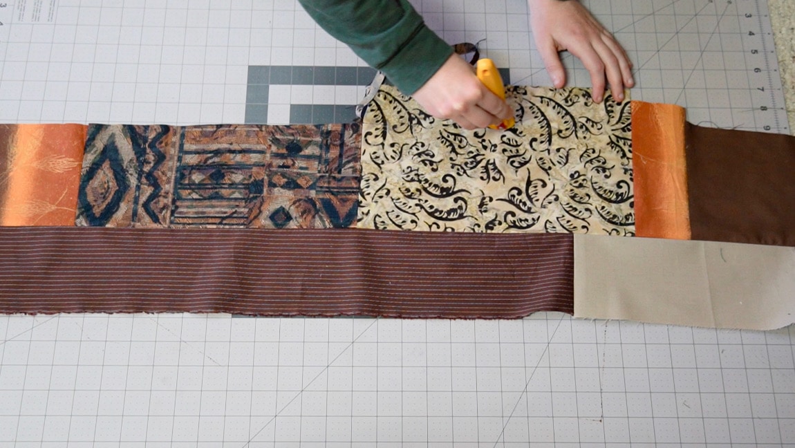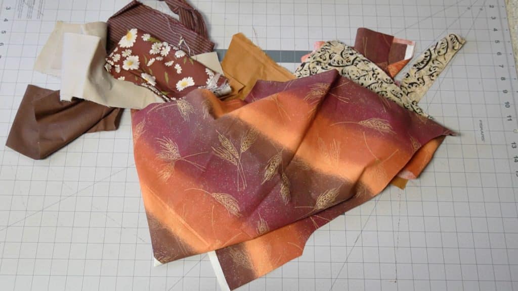I recommend cutting your fabric pieces into squares and rectangles, especially if this is your first time making a scrap project. They are easier to work with than curved edges.